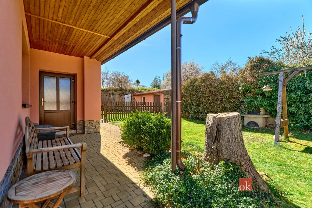 Součástí nemovitosti je garáž pro dvě auta, na kterou navazuje kryté posezení ideální pro relaxaci a trávení volného času. Vedle garáže další možnost parkovacího otevřeného stání.