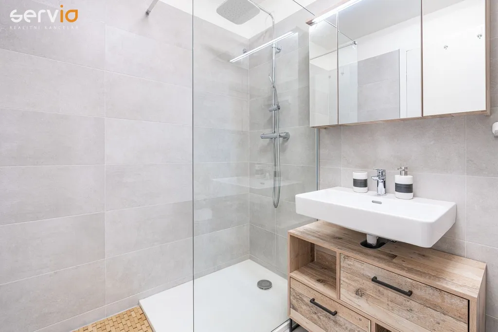 Součástí jednotky je moderně vybavená koupelna (sprcha nebo vana, WC, umyvadlo, galerka se zrcadlem, věšáky, pračka), kompletní KL včetně spotřebičů (myčka, trouba, sporák), vinylová podlaha, jídelní stůl a židle, možnost dovybavení postelí (jednolůžko, dvojlůžko), předsíňový nábytkový program, a další vybavení dle domluvy s majitelem. Ke každému bytu náleží sklep. Objekt bude zabezpečen kamerovým systémem. Volné ihned, možnost pronájmu krytého PS za poplatek 2.000,-Kč/měs + DPH. Maximální počet osob 2.