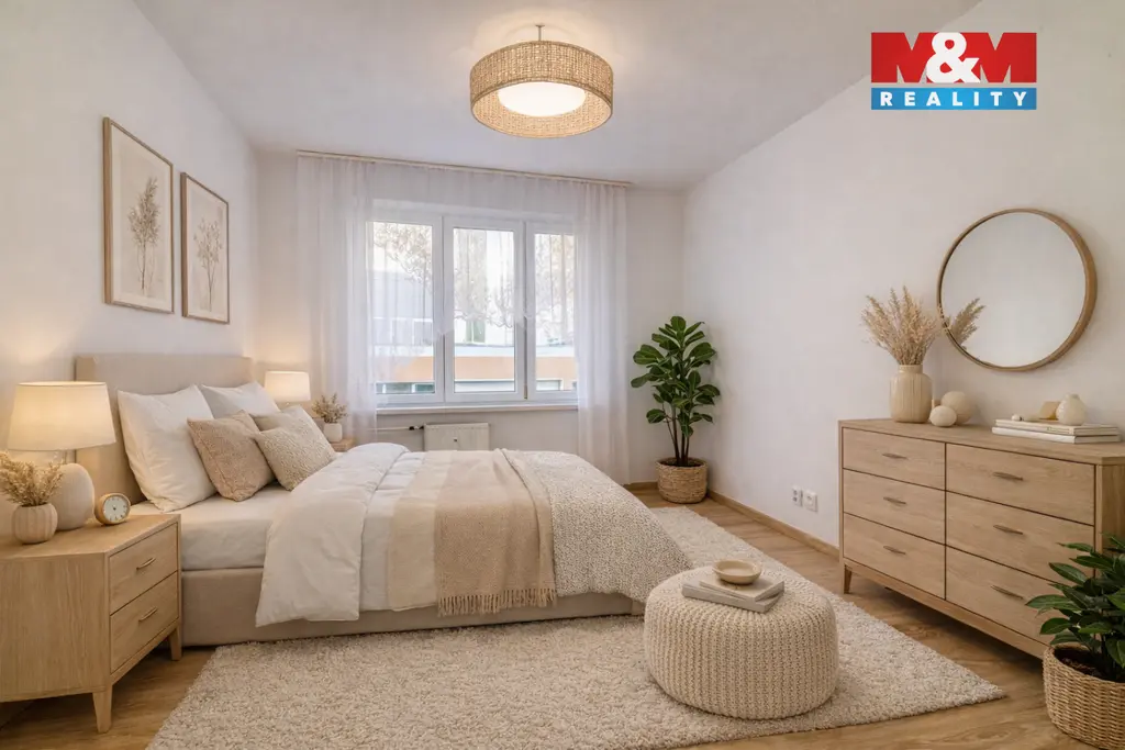 Dispozici tvoří prostorný obývací pokoj se vstupem na balkon, samostatná ložnice, kuchyně, koupelna s WC a praktická chodba.