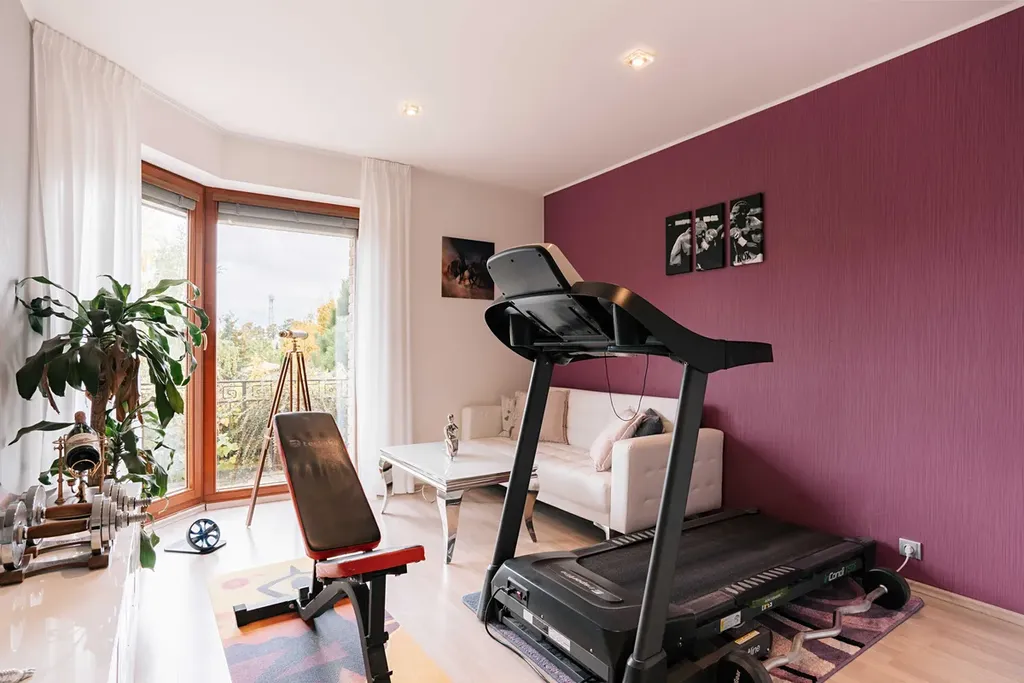 Dominantou domu je prostorný obývací pokoj s kuchyní a krbem o výměře 50 m². Díky velkým francouzským oknům je celý dům dokonale prosvětlený a propojený se zahradou.