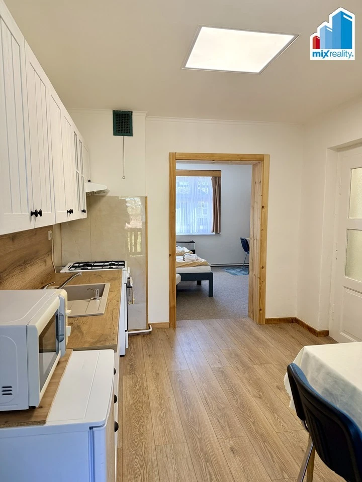 Dům disponuje třemi nadzemními podlažími, obytným podkrovím a je částečně podsklepený, což nabízí široké možnosti využití. V přízemí se nacházejí dva nebytové prostory, nyní pronajaté. První patro tvoří prostorný 3+1 byt majitelů i s terasou, zatímco druhé patro a podkroví jsou uzpůsobeny jako samostatné obytné jednotky s kuchyňkami a koupelnami, které jsou v současnosti využívány ke krátkodobým pronájmům.