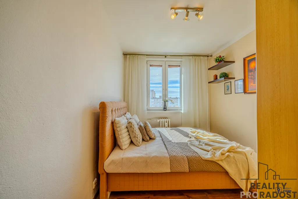 Byt 3+1 s balkónem je o celkové výměře 65 m2 + lodžií 3,58 m2 + komora na chodbě 2 m2 + sklep se nachází se v 8. patře z 13 na ulici Jiřího Herolda v Ostravě Hrabůvce.