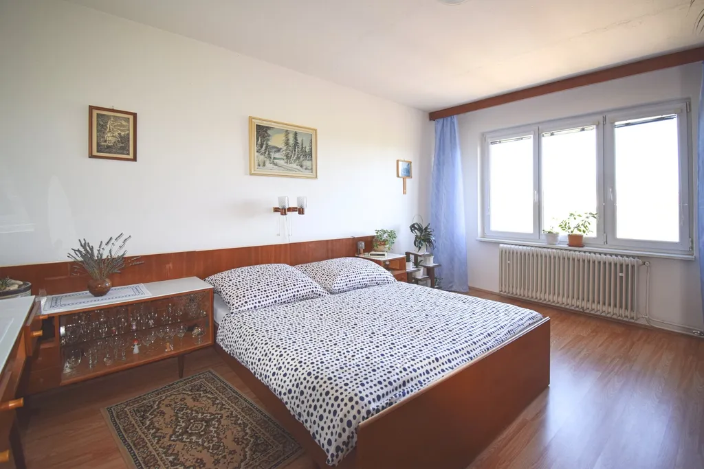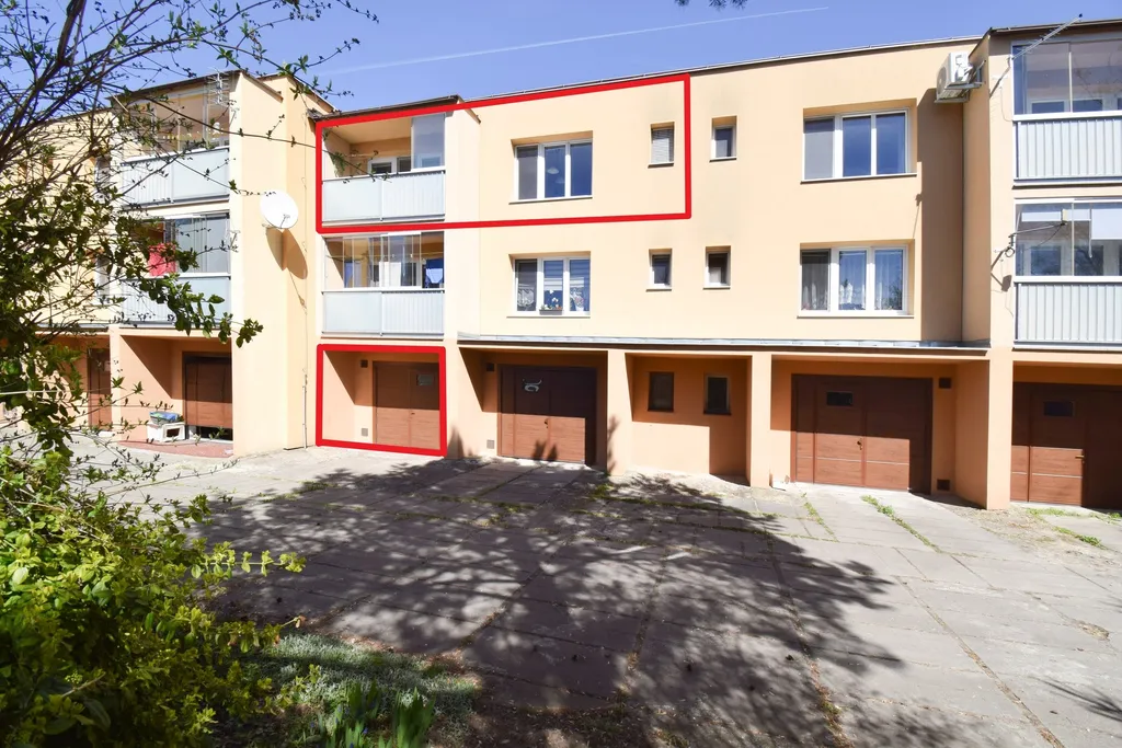 Byt disponuje prostornou předsíní, 3 pokoji, kuchyní a samostatnou komorou se vstupem z kuchyně, samostatným WC a koupelnou. K bytu náleží lodžie a sklepní jednotka, dále další samostatná komora se vstupem z chodby a garáž. Byt se nabízí vybavený kuchyňskou linkou, ostatní nábytek dle domluvy. Garáž je opatřena vraty na elektrické ovládání pro snadnou obsluhu.