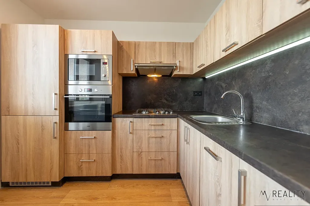 V kuchyni a koupelně jsou nainstalovány LED pásky, které poskytují dostatek dodatečného světla tam, kde jej nejvíce využijete.