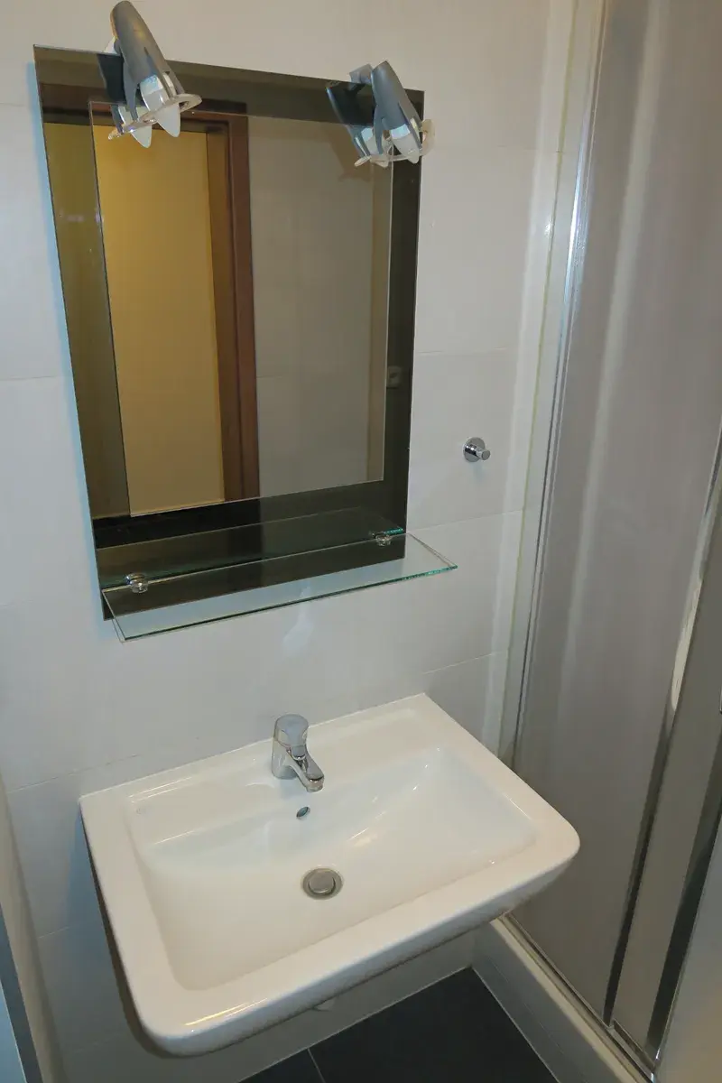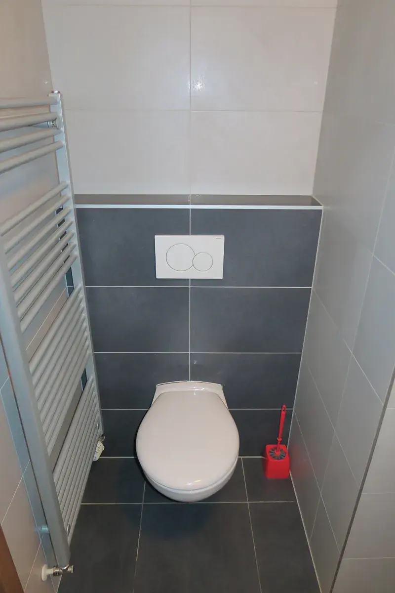 Koupelna a WC jsou dohromady, přípojka na pračku je k dispozici v koupelně.