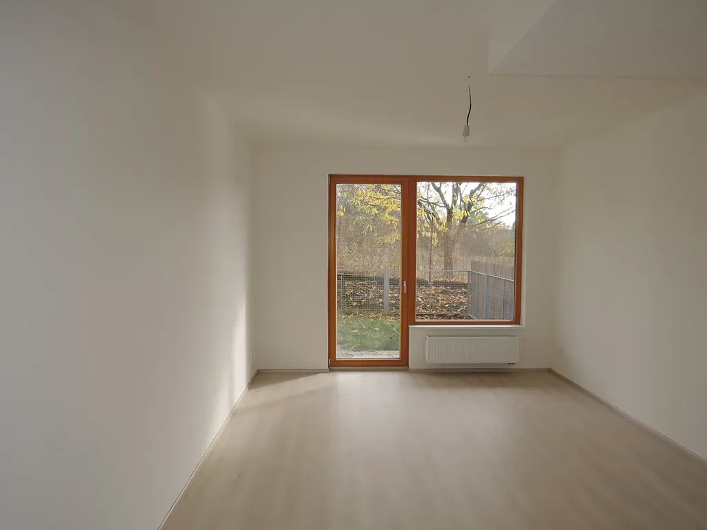 Pronájem nezařízeného bytu se zahrádkou, sklepem a garážovým stáním v novostavbě Brno - Komín, ulice Pastviny.