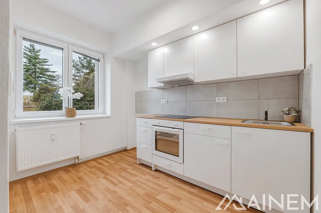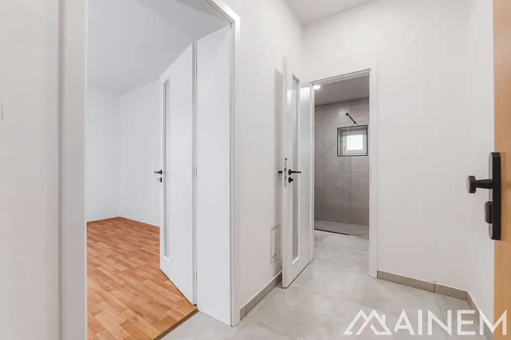 Byt prošel kompletní rekonstrukcí – byly realizovány nové rozvody vody a elektřiny i nové stoupačky, sádrokartonové podhledy, nové omítky, podlahy. Byt nabízí moderní a vkusně řešený interiér. Dominantou je krásná koupelna s elegantním osvětlením. Součástí bytu je také nová kuchyňská linka vybavená troubou, varnou deskou a digestoří.