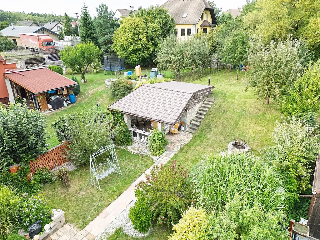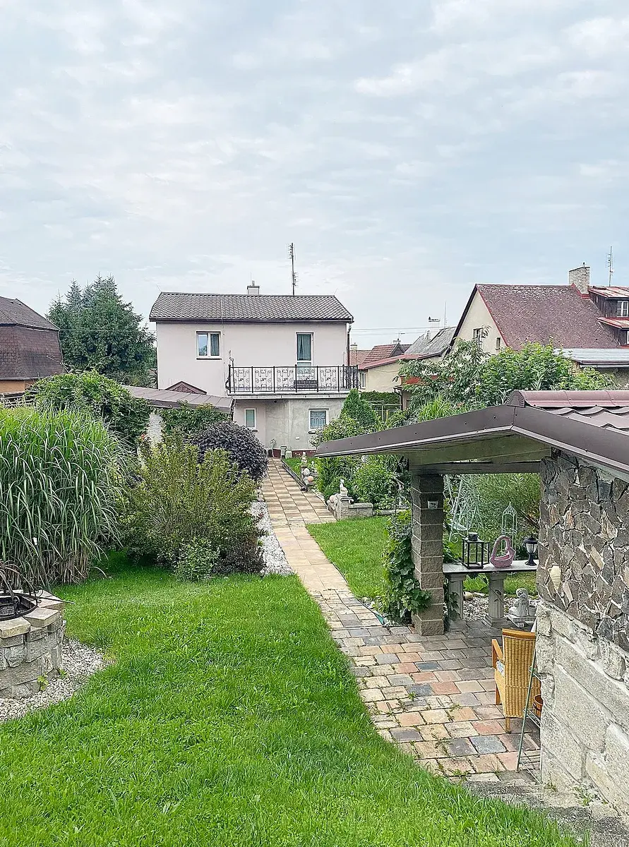 K dispozici je také vlastní garáž 25 m2 a další parkovací možnosti jsou přímo u domu. Celková plocha pozemku je 686 m² s krásnou zahradou o dostačující, méně náročné výměře 438 m², na které se nachází zděný zahradní domek 14 m2 s kuchyní a posezením. Teplo zajišťují kamna a při krásném počasí můžete posedět pod pergolou 13 m2.
