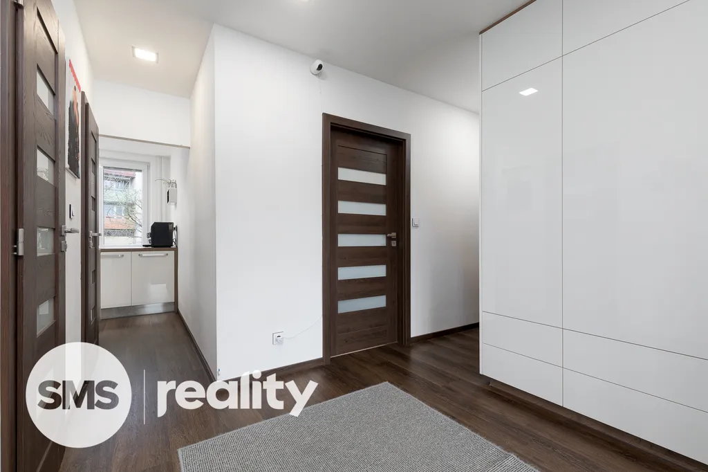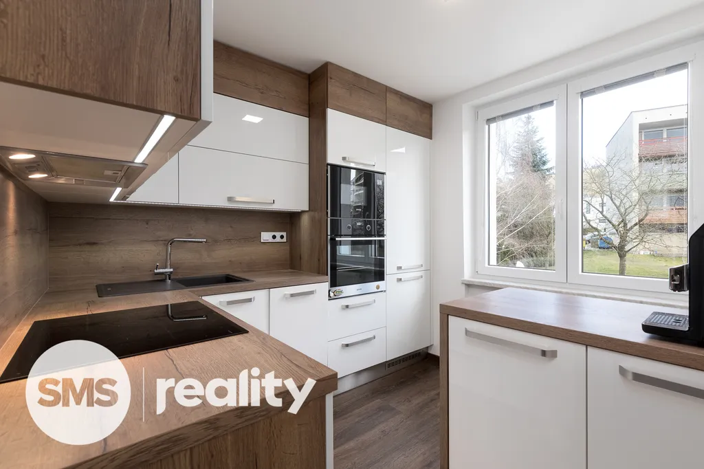 Nově nabízíme byt v osobním vlastnictví, který se nachází ve 3. nadzemním podlaží panelového domu na ulici Lidická v Hradci nad Moravicí. Celková plocha bytu činí 60m2. Byt prošel před 5-ti lety celkovou rekonstrukcí – elektroinstalace, omítky, sádrokartonové podhledy s osvětlením, vinylové podlahy, klimatizace, kuchyně na míru, kvalitní spotřebiče (indukční deska, el. trouba, mikrovlnná trouba, myčka, digestoř, granitový dřez, lednice s mrazákem). Koupelna je vybavena bezbariérovým sprchovým koutem a topným žebříkem. Součástí je také umyvadlo se zrcadlem a skříňkou, prostor na pračku a sušičku. Z prostorné chodby, kde je dostatek úložného prostoru, je vstup do ložnice, komory a obývacího pokoje s klimatizací. Lodžie nabízí nádherný výhled na panorama Hradce nad Moravicí. K bytu lze dokoupit garáž, ta je umístěna v přízemí budovy.