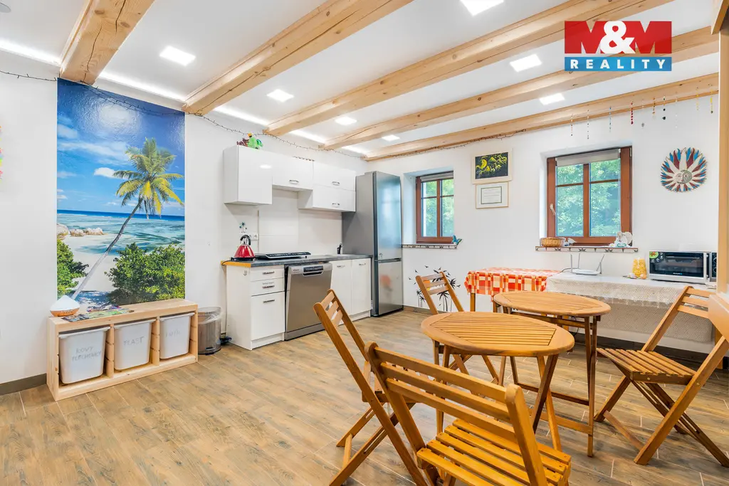 Dům po rekonstrukci v roce 2022 v Jizerských horách nabízí moderní a úsporné bydlení spojené s podnikatelským potenciálem. Nemovitost je řešena jako dva samostatné celky v jednom objektu. Hlavní část 4+kk s vlastním vstupem poskytuje plnohodnotné rodinné bydlení, druhá část má samostatný vstup a zahrnuje tři pokoje a přízemní prostor o velikosti 60 m². Části lze oddělit, což umožňuje vícegenerační bydlení nebo kombinaci bydlení a podnikání.