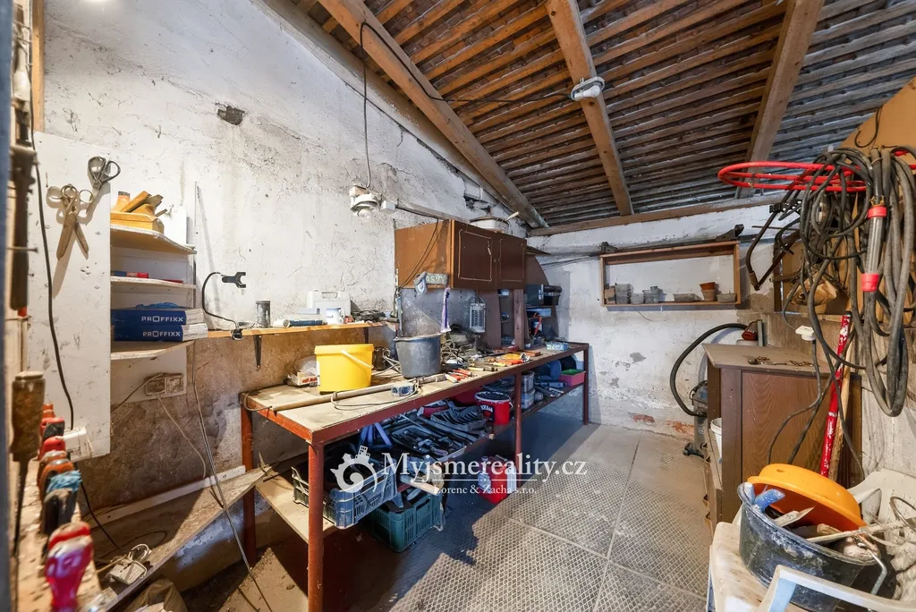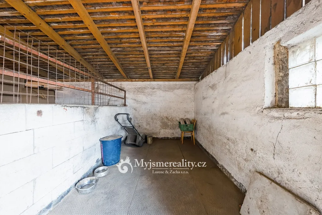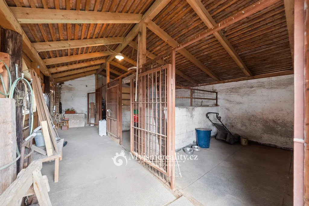 Pozemek je kompletně oplocený a nabízí dostatek prostoru pro zahradu, odpočinek i hospodářské využití. Na zahradě se nachází stáje pro tři koně, což může být zajímavou příležitostí pro milovníky koní nebo menší chov. Vedle domu je zároveň prostor, kde je možné v budoucnu vybudovat garáž. K dispozici je i sklep o velikosti cca 15 m2.
