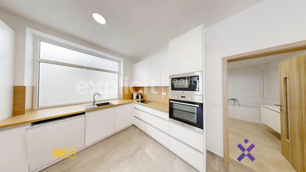 Tento luxusní, velmi nadstandartní byt je nově rekonstruován a je částečně vybaven. K dispozici máte novou krásnou kuchyňskou linkou se spotřebiči značky Elektrolux. Je zde lednička s mrazákem, myčka, sklokeramická deska, varná konvice, mikrovlnná trouba, pečící trouba, kávovar i jídelní stůl se židlemi. V bytě jsou velké šatní skříně v pokoji i na chodbě.