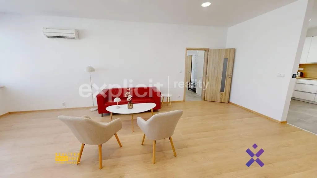 Byt k dlouhodobému pronájmu 2+kk s hlavním prostorem velkolepého obývacího pokoje a prostorné kuchyně s místem na velký jídelní stůl a dalším samostatným pokojem, který je vybavený skříněmi i psacím stolem. Pokoj je oddělený vstupní chodbou bytu, zde naleznete klid od hlavního dění v bytě.