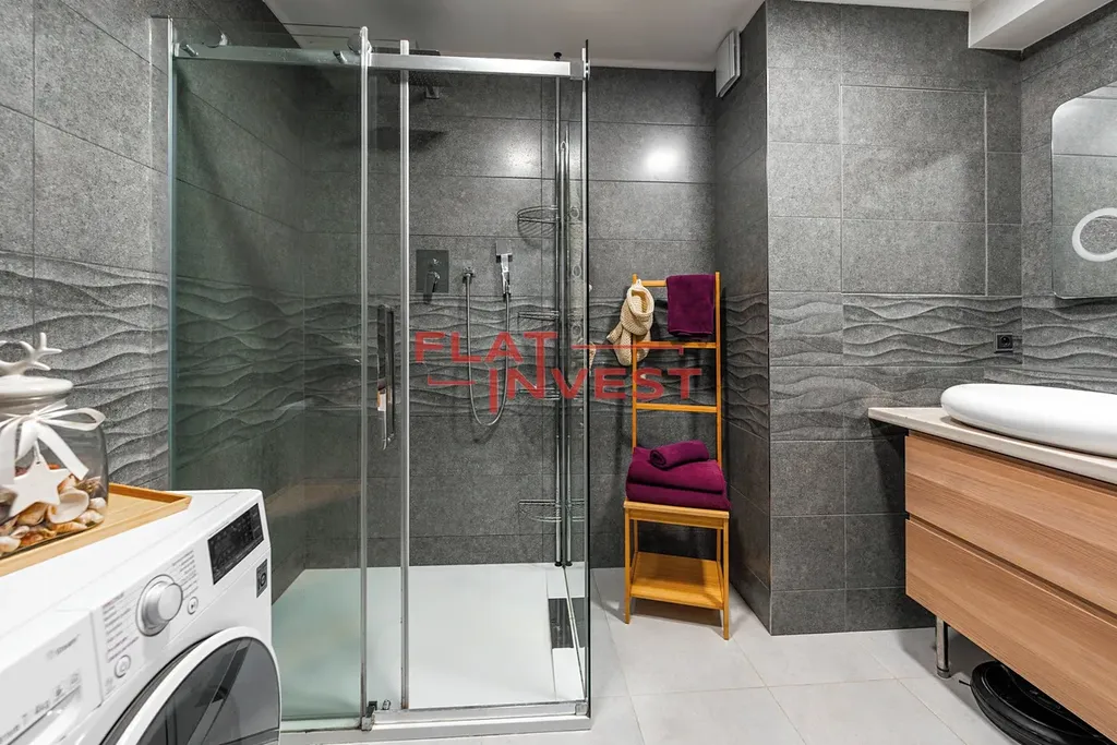 Koupelna: Nadstandardně prostorná koupelna s velkým sprchovým koutem.