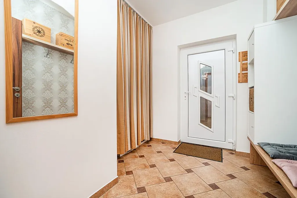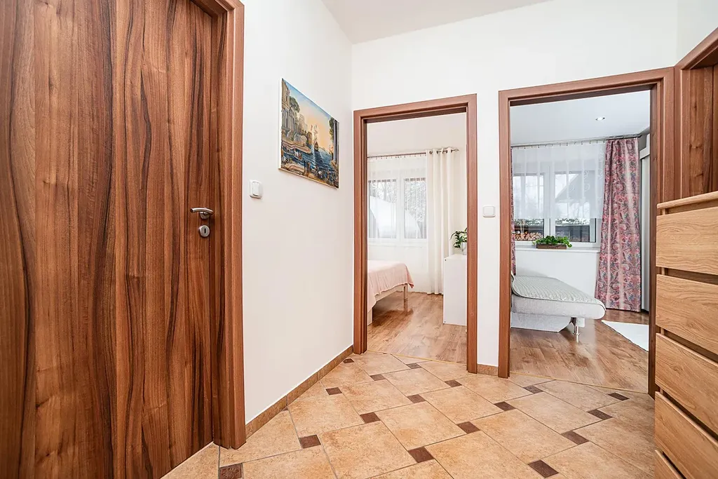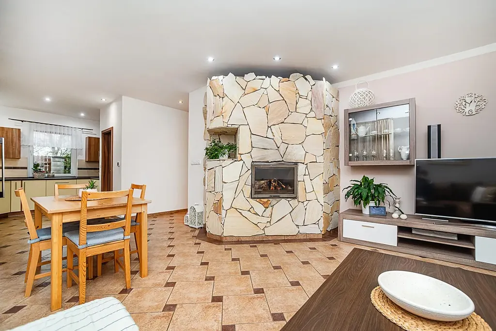 V domě naleznete prostorný obývací pokoj s krbem, moderní kuchyni s kvalitními spotřebiči a praktickou spíží, světlou ložnici, dva samostatné pokoje, technickou místnost, stylovou koupelnu se sprchovým koutem i rohovou vanou a samostatné WC. Komfort bydlení zvyšuje podlahové vytápění, které je instalováno v celém domě. K dispozici je také centrální vysavač, který je velkým bonusem pro údržbu domácnosti.