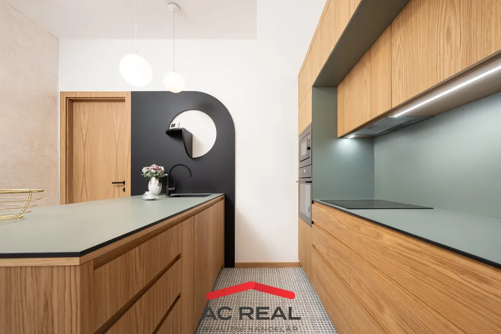 Byt prošel v roce 2025 kompletní rekonstrukcí - nové rozvody elektřiny, plynu, vody, omítky, dřevěné podlahy, obklady a dlažby, moderní koupelna se sprchovým koutem a nová kuchyňská linka včetně spotřebičů značek Electrolux a Whirlpool, v chodbě je k dispozici vestavěná skříň. Součástí rekonstrukce bylo také repasování původních historických dveří doplněných o bezpečnostní zámek a vícebodový uzamykací systém. Z oken i balkonu je příjemný výhled do zeleně vnitroblokové zahrady, která je nájemníkům domu volně přístupná. Díky orientaci bytu do zahrady nabízí byt dostatek denního světla i klidné bydlení.