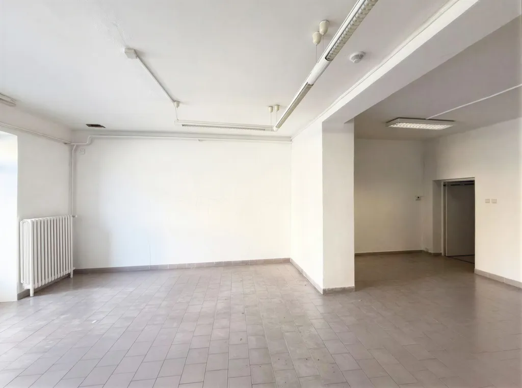 Hlavní obchodní prostor je průchozí a navazuje na zadní místnost, která může sloužit například jako kancelář, zázemí pro personál nebo menší sklad. Toto řešení umožňuje oddělit pracovní administrativní část od hlavního provozu a zároveň zachovat pohodlné propojení mezi jednotlivými místnostmi.