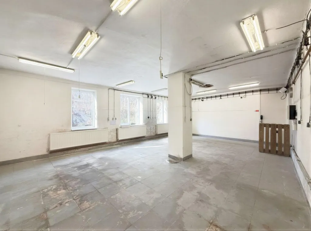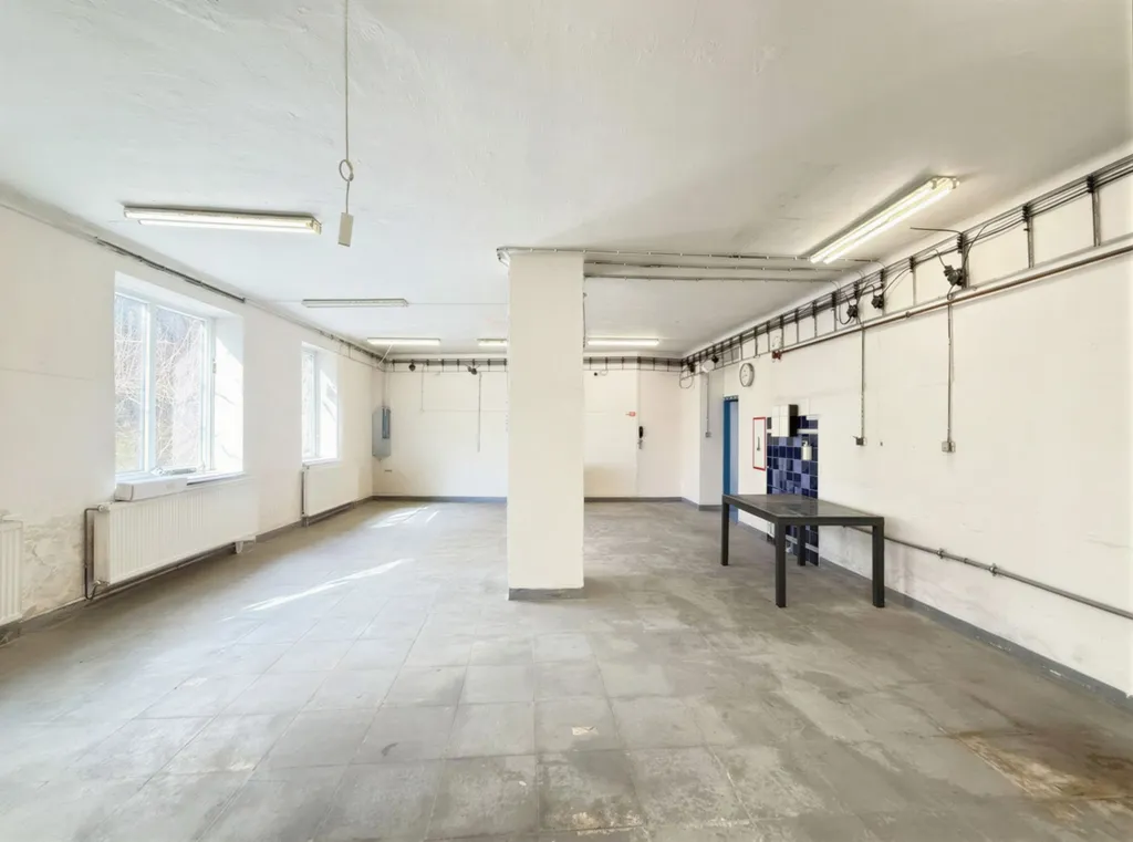Velký skladový prostor o celkové ploše 59,6 m² je řešen jako otevřená místnost vhodná pro skladování nebo lehkou logistiku. Uprostřed prostoru se nachází nosný sloup, který přirozeně rozděluje místnost a může pomoci při organizaci skladových zón. Prostor je prosvětlen okny, což zajišťuje dostatek denního světla a lepší orientaci při práci. Dispozice umožňuje flexibilní využití podle potřeb nájemce či provozu.