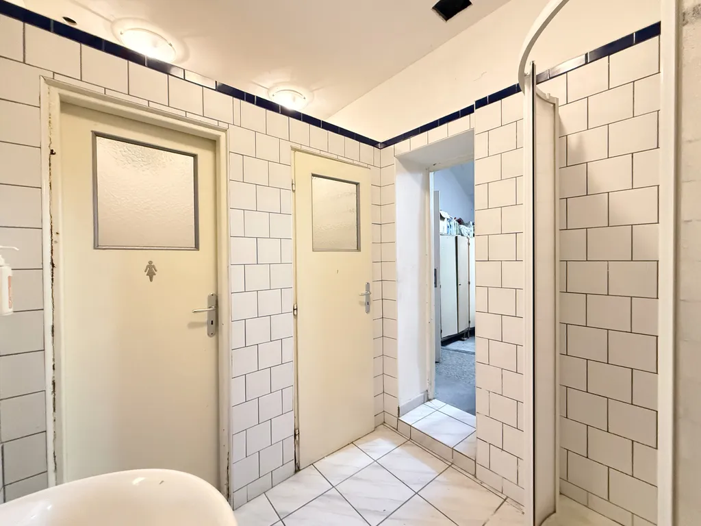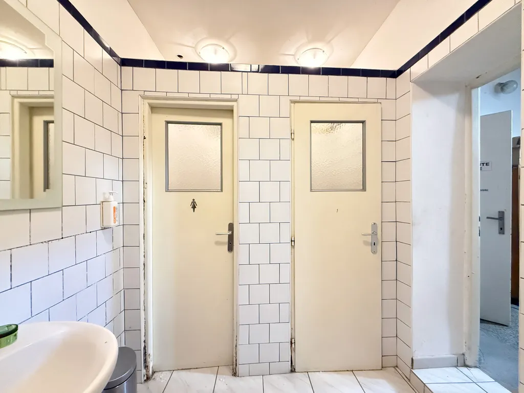 K dispozici je také koupelna se dvěma toaletami, která je sdílená s druhou kanceláří a zajišťuje komfort pro zaměstnance i návštěvy.