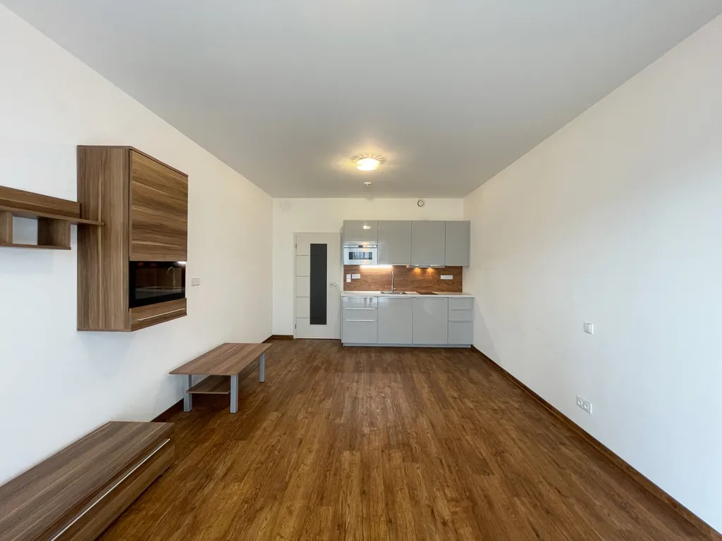Byt je částečně vybavený. K dispozici je kuchyňská linka s lednicí, varnou deskou a mikrovlnnou troubou, dále konferenční stolek a obývací stěna. Hlavní obytný pokoj se vstupem na velkorysou terasu. Okno na terasu má rolety a záclony. Dispozice bytu nabízí prostornou chodbu, koupelnu se sprchovým koutem a prostorem pro pračku i sušičku . Velkou výhodou je také komora přímo v bytě, která poskytuje praktický úložný prostor. V domě je k dispozici také společná kolárna. Samozřejmostí je optické připojení Nordic pro rychlý internet.