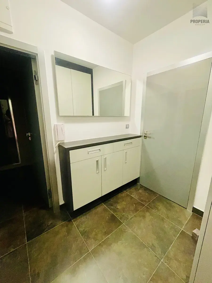 Prostor je řešen prakticky a zároveň s důrazem na příjemné pracovní prostředí. K dispozici je kvalitní kuchyňská linka s vestavnými spotřebiči, která může sloužit jako komfortní zázemí pro každodenní provoz. Součástí je také prostorná koupelna se sprchovým koutem a toaletou. Příjemný standard doplňuje podlahové vytápění, které zajišťuje vysoký uživatelský komfort po celý rok.