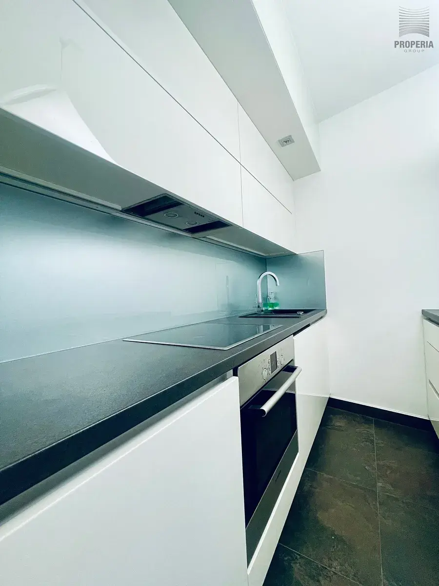 Interiér bytu je řešen prakticky i stylově - nabízí příjemnou atmosféru s dostatkem úložných prostor. K dispozici je kvalitní kuchyňská linka s vestavnými spotřebiči. Prostorná koupelna se sprchovým koutem a WC, podlahové vytápění, které zajišťuje komfortní bydlení.