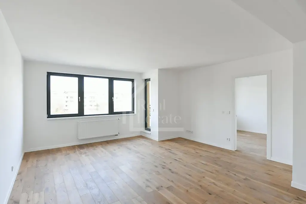Dispozice bytu nabízí komfortní obývací pokoj s kuchyňským koutem, dvě samostatné ložnice, koupelnu a vstupní chodbu. Velká okna zajišťují dostatek denního světla a vytvářejí příjemnou, vzdušnou atmosféru. Projekt nabízí kvalitní provedení spojený s moderní architekturou a nízkými provozními náklady.