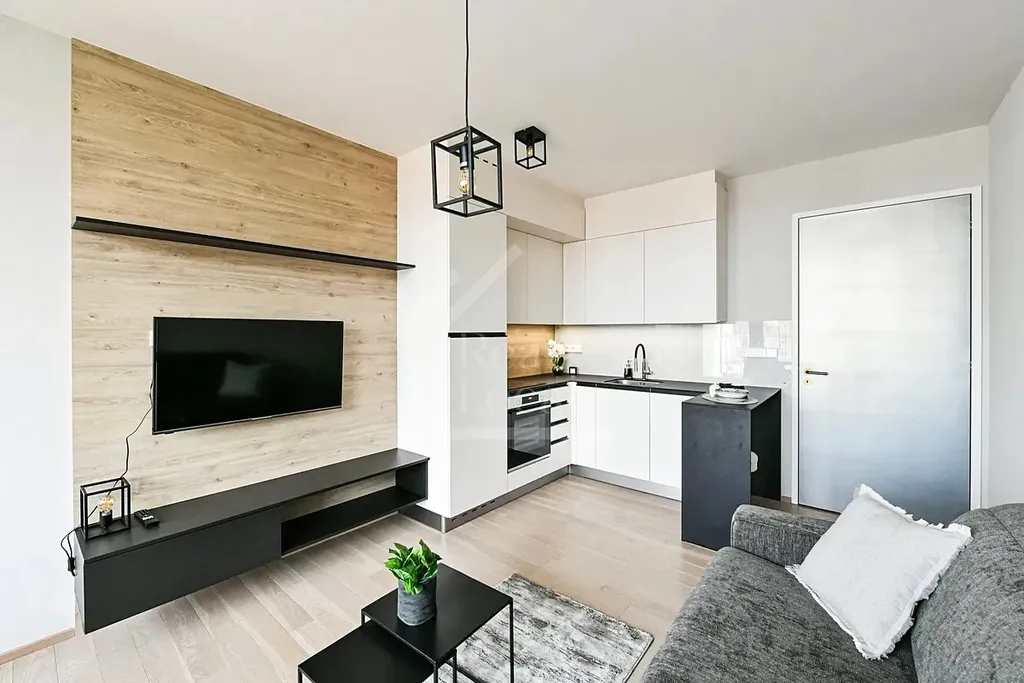 Byt je řešen jako otevřený a světlý prostor s obývací částí a kuchyňským koutem. Dispozice nabízí dostatek místa jak pro bydlení, tak pro pracovní kout. Koupelna je moderní, s kvalitní sanitou. Byt působí velmi vzdušně a je ideální pro jednotlivce nebo pár.