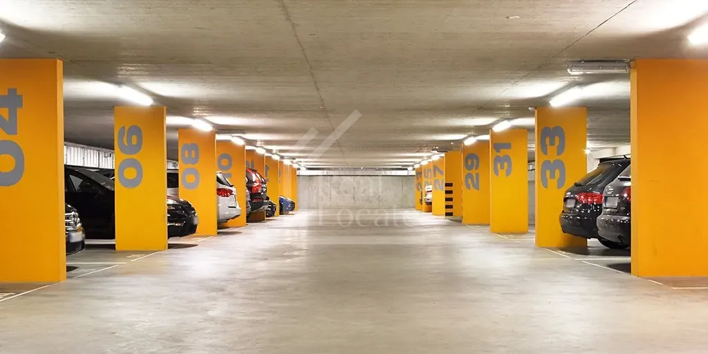 Parkovací místo má rozměry přibližně 16 m² (cca 2,4 × 6,6 m), vhodné pro osobní automobil, včetně SUV.