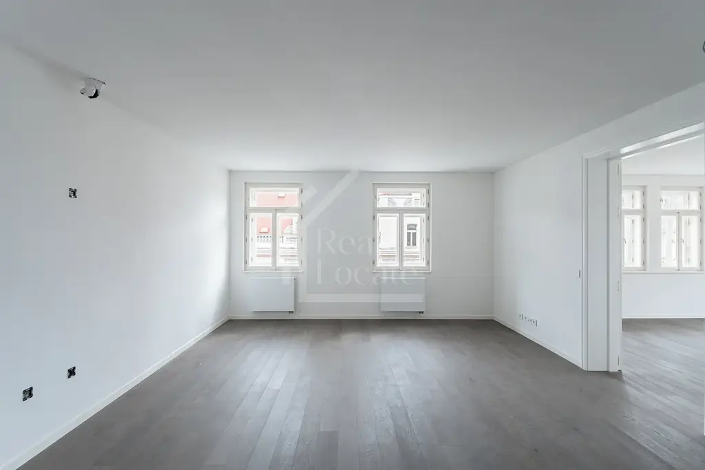 Byt je prostorný a světlý a jsou zde použity kvalitní italské materiály, dřevěné podlahy, nádherné dvoukřídlé dveře a špaletová okna. Byt má vysoké stropy (3 m), dvě prostorné koupelny se sprchovým koutem a mramorovými obklady. Vchodové dveře jsou vyrobeny z kvalitního italského masivu.