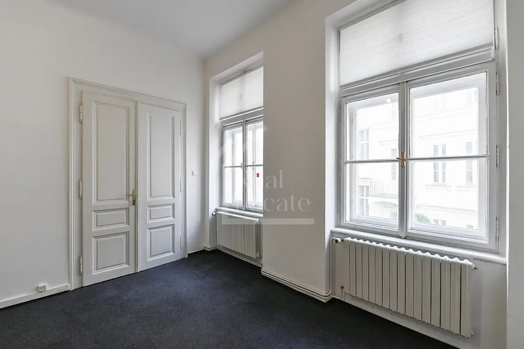 Dispozice prostor je velmi praktická – kancelář je členěna do několika samostatných místností a nabízí vše potřebné pro komfortní pracovní prostředí: kuchyňku, toaletu i sprchový kout. Vysoké stropy a velká okna zajišťují dostatek denního světla a příjemnou vzdušnost.