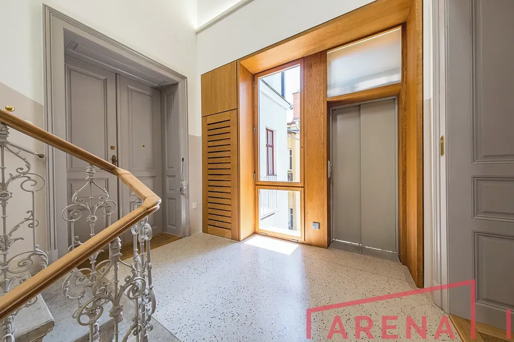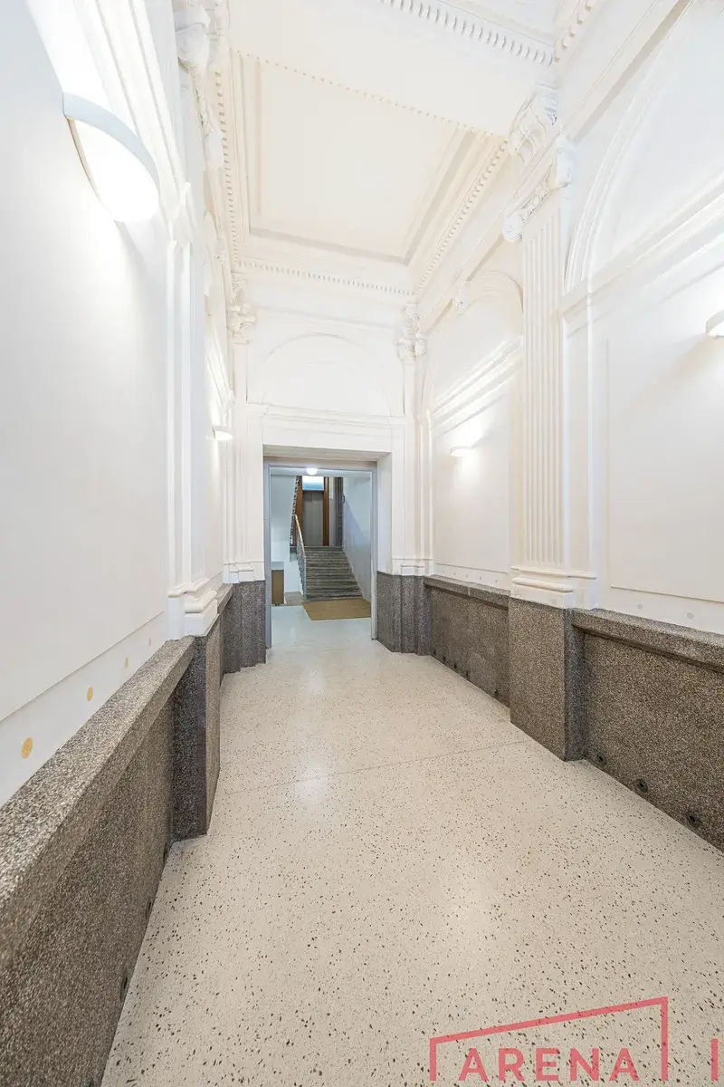 Prostory zaujmou elegantním interiérem s dochovanými architektonickými prvky, vysokými stropy a kvalitními materiály, což vytváří reprezentativní pracovní prostředí.