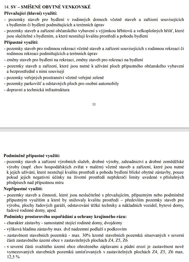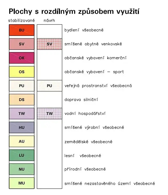 V platném územním plánu obce je pozemek označen: