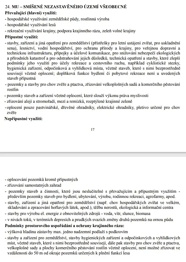 2) zbylá plocha označena jako MU s výměrou cca 7.726m2 (plochy smíšené nezastavěného území). Možnost oplocení a staveb pro účely chovu zvěře
