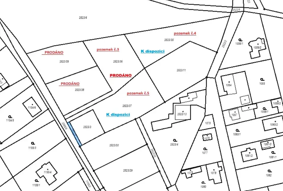 Pozemek č. 5 : výměra 1.362m2………...2.300Kč/m2