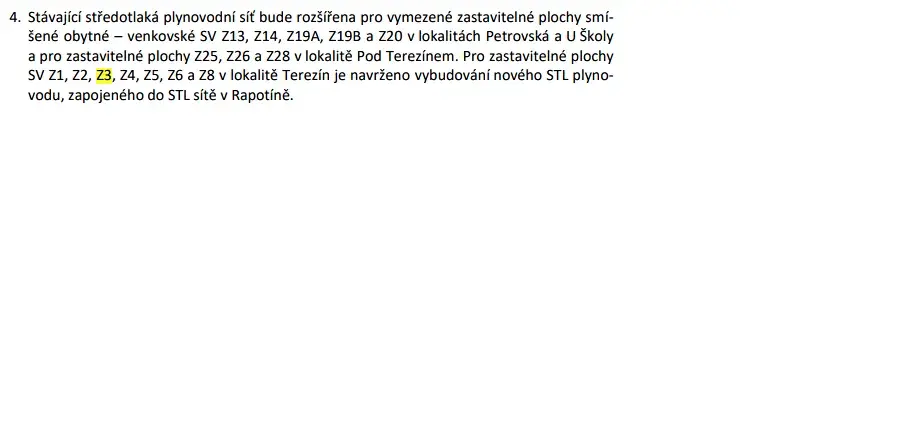 Plyn – zatím v návrhu ÚP v uliční čáře