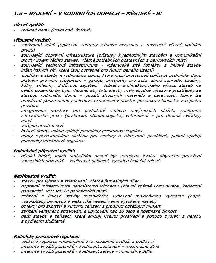 V platném územním plánu je pozemek zahrnut jako stavební - bydlení v rodinných domech městské.