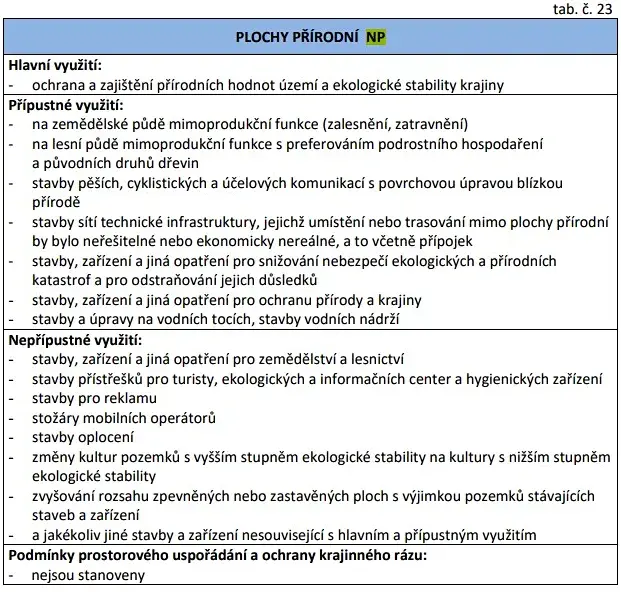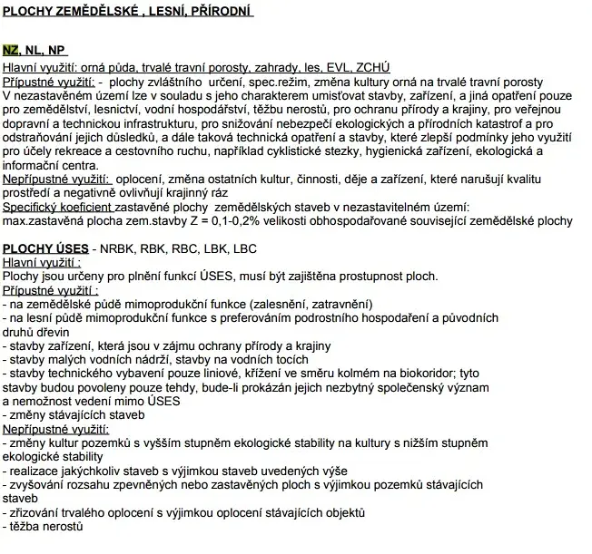 V aktuálním územním plánu je pozemek vedený jako plocha zemědělská, lesní a přírodní s hlavním využitím: orná půda, trvalé travnaté porosty, zahrady, les atd.