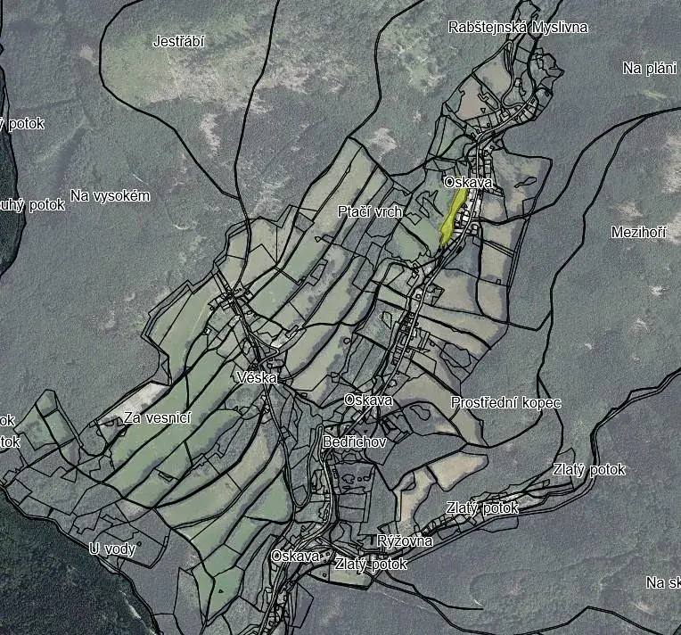 Vlastník prodá pozemek - trvalý travnatý porost s celkovou výměrou 5.983m2 nacházející se v obec Bedřichov (malebná vesnička v Olomouckém kraji, která je součástí obce Oskava v okrese Šumperk). Aktuálně je svažitý pozemek upraven z jedné poloviny jako zahrada, tj. zaplocené plochy se zahradním vybavením + část s náletovými dřevinami (buk, dub, bříza, javor). Pozemek je přístupný z hlavní komunikace přes potok. Inženýrské sítě: elektřina ze stávající infrastruktury v obci do 50m od pozemku. V obci čerpají vodu obyvatelé z vlastních studen. Likvidace odpadních vod probíhá lokálně, s realizací kanalizační sítě se neuvažuje. V obci není zaveden plynovod. Výhledově je uvažováno nadále s centrálním svozem PDO.