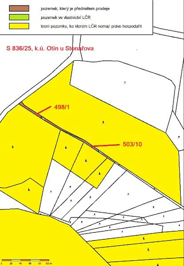 Jedná se o prodej 2 lesních pozemků parc. č. 498/1 o výměře 517 m2 a parc. č. 503/10 o výměře 411 m2, nacházejících se západně od obce Stonařov, úzkého protáhlého tvaru, uvnitř komplexu privátních lesů. Pozemek parc. č. 498/1 je bezlesí, na pozemku parc. č. 503/10 se nachází zbytek listnatých stromů a keřů.