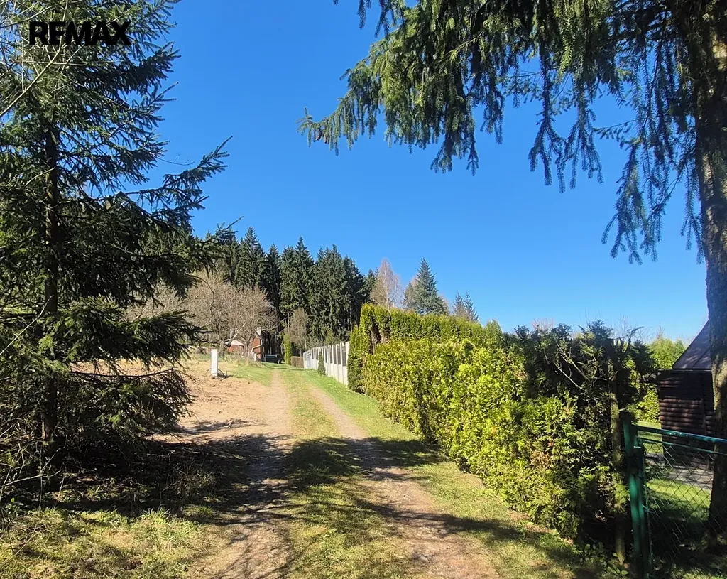 K chatě patří udržovaná oplocená zahrada téměř rovinatého terénu o výměře 404 m2.