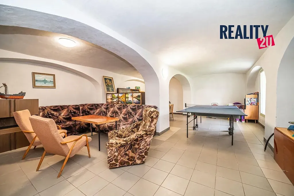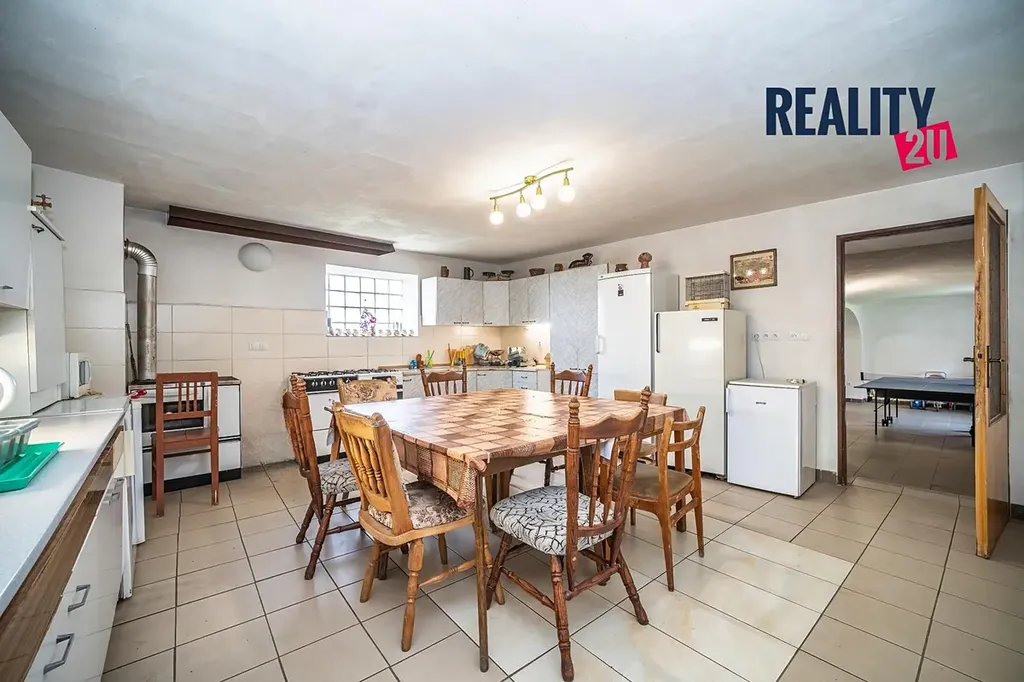 • Hlavní budova ve tvaru L disponuje 6 pokoji, dominantou domu je pak prostorná kuchyň o výměře 26 m² a velká společenská místnost o výměře 49 m²- ideální pro společné akce, posezení