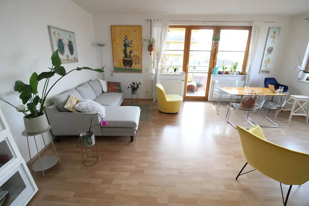Dominantou bytu je prostorný obývací pokoj s jídelní částí a kuchyňským koutem, odkud je přímý vstup na balkon s příjemným výhledem. Ložnice disponuje praktickou šatnou.