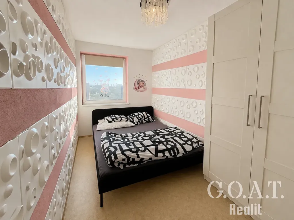 Dispozice bytu zahrnuje obývací pokoj s kuchyňským koutem o velikosti 24,67 m², dětský pokoj o výměře 12 m², ložnici o velikosti 8,30 m², prostornou chodbu 9,60 m², koupelnu 4,74 m² a samostatné WC 1,74 m². Součástí bytu je také balkon o výměře 6,58 m², který poskytuje ideální prostor pro odpočinek, a praktická komora o velikosti 2 m². K bytu náleží vlastní parkovací stání.