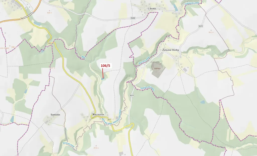 Lesní pozemek o výměře 1408 m2, parcelní číslo 106/5, podíl 1/1, katastrální území Macourov, obec Žižkovo Pole, obec s rozšířenou působností Havlíčkův Brod, okres Havlíčkův Brod, Kraj Vysočina.