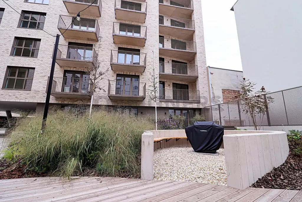 Pro studium nebo práci je k dispozici sdílený lounge s coworkingovým zázemím, tiskárnou a Wi-Fi. Součástí komplexu je také krásně upravený zelený vnitroblok s altánky, dětským hřištěm, grilovacími místy a odpočinkovými terasami.