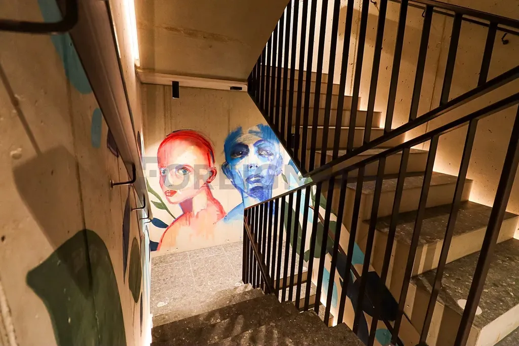 Ateliér je situován v moderním domě s výtahem a zaujme kvalitním provedením v industriálním stylu, kombinujícím betonové prvky, teplé barvy a designové osvětlení.