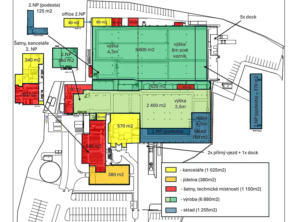 Prostory jsou vhodné především pro výrobní společnosti.