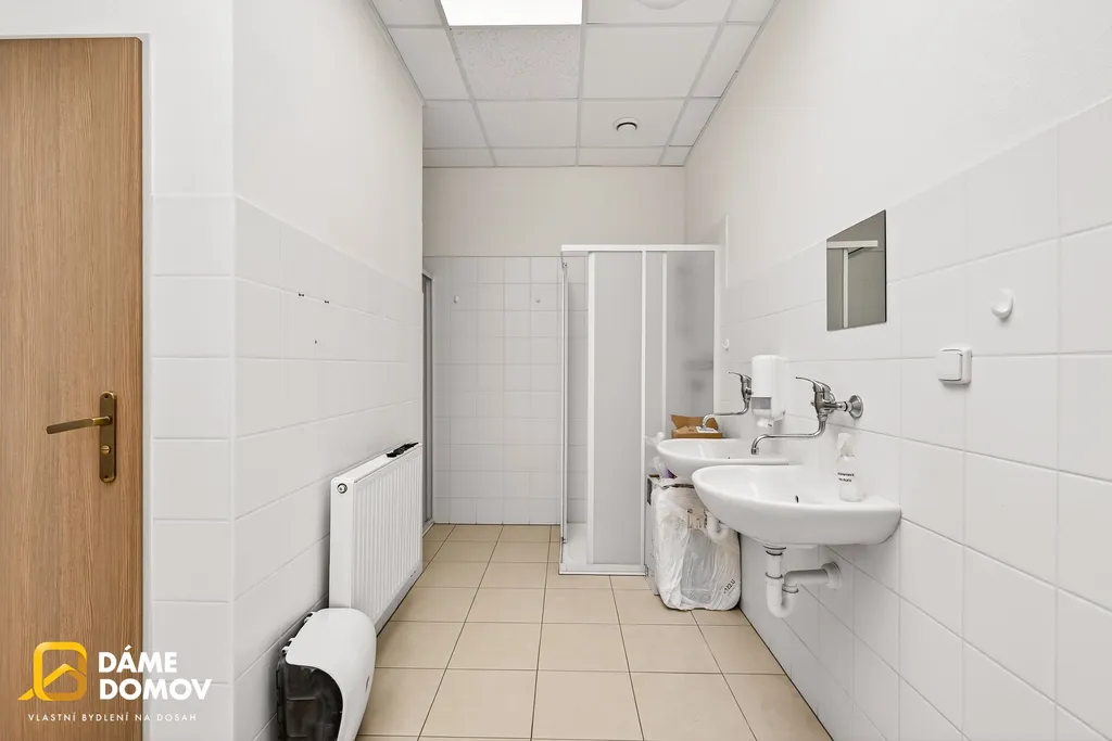 Součástí objektu je také administrativní zázemí v patře, kde najdete kanceláře, jídelnu i sociální zařízení – vše potřebné pro pohodlný chod firmy na jednom místě.