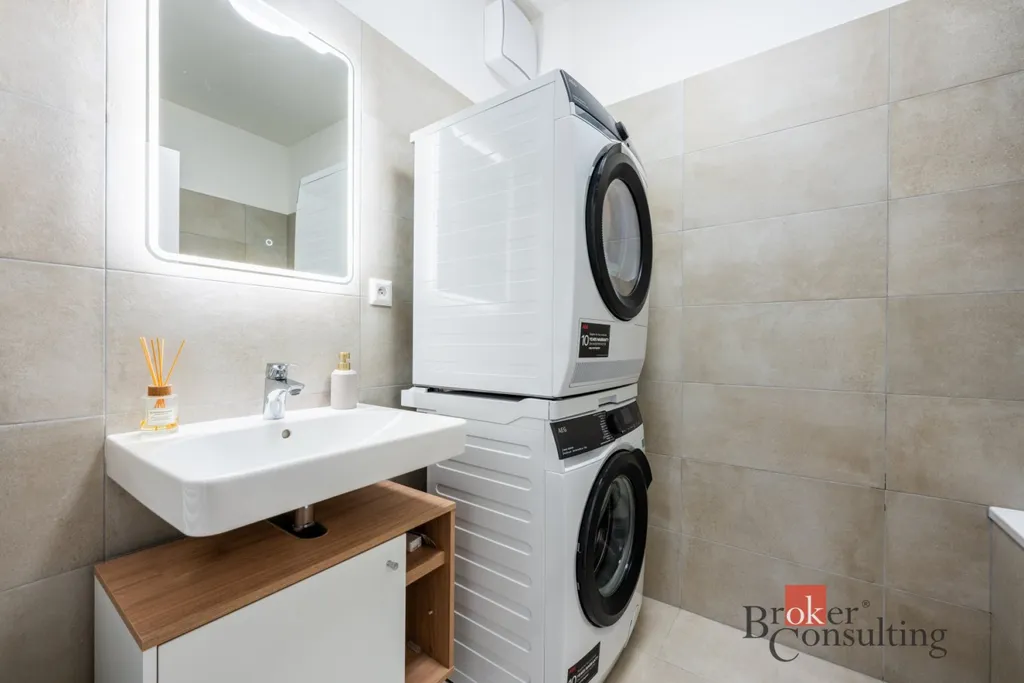 Byt se pronajímá z velké části vybavený. Další velkou výhodou je jedno rozměrné garážové stání a sklep. Nájemné činí 22.000,-Kč měsíčně bez záloh na energie a služby. Majitelé požadují kauci ve výši jednoho měsíčního nájemného, provize RK je ve výši jednoho měsíčního nájemného + 21% DPH.